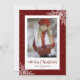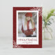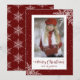 Cartes de Noël avec titre de calligraphie et cadre photo rouge enneigé avec flocons de neige. Personnalisez facilement ces cartes rouges de Noël avec votre image et votre nom de famille.