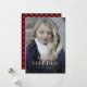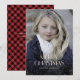 Le buffle rouge neigeux plaid photo carte de Noël avec de la neige sur une photo à l'avant. Un buffle rouge plaçait l'arrière - plan à l'arrière. Personnalisez facilement cette carte photo de Noël avec votre photo, texte et le nom de famille. Créez une photo magique Joyeuse carte de Noël pour votre famille et vos amis cette période de fêtes.