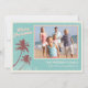 Cartes de Noël vintage bleu clair avec palmiers décorés de lumières de Noël. Personnalisez avec votre propre photo.
