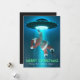Cartes de Noël amusantes. Santa enlevé par des extraterrestres / OVNI. Idéal pour les cartes de vacances en famille, les cartes de vacances d'entreprise ou les cartes de vacances professionnelles.