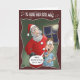 Une carte de voeux de Noël de bande dessinée avec une bande dessinée de Père Noël attrapant un jeune à un moment inopportun.