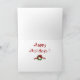Une carte de voeux de Noël de bande dessinée avec une bande dessinée de Père Noël regardant la ligne des enfants obtenant prête à entendre la liste de tous les bons garçon et fille avec "le message des vacances heureuses" sur l'intérieur.