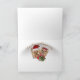 Deux chiots Yorkshire Terrier habillés pour les vacances à Père Noël Gear et chapeaux de Père Noël sont présentés sur les cartes de Noël colorées.