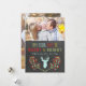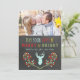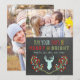Happy Holidays noël nom personnalisable et carte photo en motif de tableau de bord rustique avec illustration florale vintage, cerf avec bois, et texte de style lettré à la main. Ajoutez votre texte personnalisé à cette carte pour créer une photo de Noël unique saluant cette période de fêtes pour les amis et la famille.