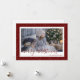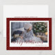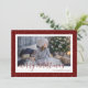 Cartes de Noël personnalisées rouge et or avec titre calligraphié et cadre photo neigeux rouge. Personnalisez facilement ces cartes de Noël avec votre image, le nom de votre famille et votre texte.