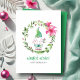 Ces jolies cartes de Noël de plage présentent mon elfe de Noël original peint à la main à l'aquarelle, vêtu d'une chemise de flamingo rose et d'un long chapeau, entouré d'une couronne de style ferme de verdure et de baies rouges sur un fond blanc croquant. Les mots "Warmest Wishes" sont affichés dans un script moderne écrit à la main. Parfaites pour un Noël tropical en Floride 2024, ces cartes peuvent être personnalisées pour répondre à vos besoins. Disponibles en cartes de Noël hawaïennes imprimables ou imprimées en rouge et vert festifs.