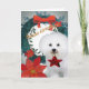 Carte de Noël de Bichon Frise comportant Bichon tenant l'étoile rouge avec le backgound de guirlande de vacances
