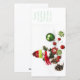 cartes de voeux de vacances de Noël 4x8 avec un bonhomme de neige adorable et des babioles de fête de Noël sur un arrière - plan blanc. Un Joyeux Noël standard et les bonnes années saluant est inclus sur l'avant de la carte. Pièce pour des signatures au-dessous de la salutation.