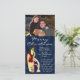 Cartes photos de Noël chrétiennes personnalisées, Ajoutez votre photo et votre texte personnalisés. Belle nuit bleu foncé arrière - plan avec la crèche de scène graphique et, vers de la bible et texte personnalisé.