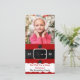 Les adorables cartes photos de vacances de Noël sont la meilleure façon d'envoyer vos voeux de vacances avec votre photo de Noël! Ajoutez votre photo à la moitié supérieure de cette carte photo de Noël en costume de Père Noël. La demi-conception inférieure offre une vue rapprochée d'un costume de Père Noël rouge, avec sa ceinture noire avec boucle argentée, boutons noirs brillants et garniture blanche et moelleuse. À l'intérieur de la zone d'ajustement blanc est le texte pour vous de customiser en caractères rouge et vert! Sur la ceinture en caractères blancs est l'année. Personnaliser à la bonne année et votre carte photo est terminé! Les amis et la famille sont sûrs de sourire quand ils reçoivent cette super mignonne carte photo de Noël de costume de Père Noël avec votre photo dessus!