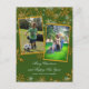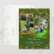 Cartes photos de Noël vert et or. Les cartes postales de vacances abordables nécessitent moins d'affranchissement et celui-ci a des lignes sur le dos pour les adresses. Remplissez deux modèles verticaux avec des photos personnelles de la famille, et customisez le texte de salutation et la signature.