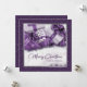 Cartes de Noël mauve et argent personnalisées avec un sac plein de cadeaux de Noël. Personnalisez cette élégante carte de Noël violet pour envoyer cette période de fêtes.