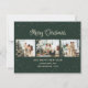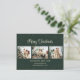 Elégante photo verte personnalisée Joyeuses cartes de Noël avec un collage photo et la chute de neige sur un arrière - plan vert foncé. Personnalisez facilement cette carte verte de Noël avec vos images préférées, un nom de famille et un texte.