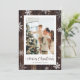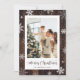Cartes de Noël en bois rustique personnalisées avec des flocons de neige sur un arrière - plan en bois rustique enneigé. Personnalisez facilement ces cartes de Noël avec votre photo et votre nom de famille.