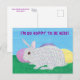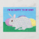 Un joli dessin coloré d'un joli lapin lapin en plaid, assis devant les oeufs de Pâques, est imprimé sur des cartes postales personnalisées. Plaid Bunny dit, "J'ai tellement envie d'être ici !" Le texte peut être customisé sur le formulaire modèle. Merci pour faire du shopping à CherylsArt sur Zazzle.