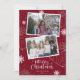 Photo rouge personnalisée Joyeuses cartes de Noël avec des flocons de neige et des cadeaux sur un arrière - plan rouge avec une police de caractères manuscrite. Personnalisez facilement ces cartes photo de Noël avec vos images et texte.