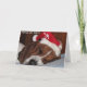 Carte de vacances avec le chien de basset mignon Père Noël. Dit la PAIX SUR TERRE sur l'avant, blanc à l'intérieur.
