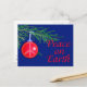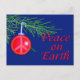 Une belle carte qui transmet un message important. Une toupie de pin tient un ornement de vacances qui a un signe de paix gravé dedans. Cartes avec enveloppes, cartes postales et autocollants. Achète un ou cent. Entièrement personnalisable, ajoutez votre propre salutation, personnalisez le contenu de votre coeur.