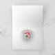 Les chiens de vacances de Samoyed posent avec Père Noël et son traîneau dans des cartes de Joyeux Noël par conception de Friskybizpet.