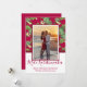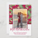 Mele Kalikimaka Cartes de fin de année de photos de Noël. Ce design moderne simple de carte de vacances présente une typographie en lettres rouges bordeaux saluant "Mele Kalikimaka" avec un motif vert jaune à fleurs tropicales et feuilles sur arrière - plan bordeaux. À l'arrière arrière - plan de couleur bordeaux. Vous pouvez personnaliser la conception en remplaçant l'exemple de texte et la photo horizontale. #3352 Si vous avez besoin d'aide ou d'articles correspondants, contactez-moi !