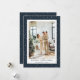 Cartes de Noël bleues simples et modernes avec neige tombante sur un arrière - plan bleu foncé. Personnalisez facilement cette carte de Noël photo moderne avec votre image préférée et un nom de famille.