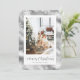 Festive fausse feuille d'argent photo Joyeuse carte de Noël avec flocons de neige, étoiles et chute de neige sur un faux arrière - plan de feuille d'argent. Personnalisez facilement cette carte de Noël calligraphique avec votre photo et votre texte.