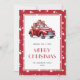 Cartes de Noël rouges rétro personnalisées avec un camion rouge classique, chute de neige et étoiles. Personnalisez facilement ces cartes de Noël de camion rouge aquarelle avec votre nom de famille.