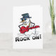 Cartes de Noël Snowman et cadeaux de Noël avec l'image d'un bonhomme de neige jouant de la guitare disant à tout le monde de Rock on! Fun peluche, cadeaux de Noël et cadeaux secrets père Noël pour petits et grands !