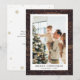 Cartes de Noël en bois rustique personnalisées simples avec neige tombante, flocons de neige et étoiles. Personnalisez facilement cette carte de Noël rustique avec votre image préférée, un nom de famille et un texte.