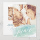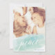 Ce joli design présente un traitement d'aquarelle personnalisé dans les tons aqua et menthe et un message de paix simple dans un script élégant. Le dossier comprend de l'espace pour ajouter un message personnel et une photo supplémentaire.