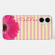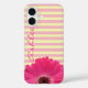 Un étui de téléphone rayé et joliment personnalisable avec un Gerber Daisy rose! Faites les rayures jaunes n'importe quelle couleur !
