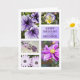 Un jardin des fleurs dans des tonalités et des nuances de lavande. Une collection de belles fleurs comprenant la lavande, le pétunia, la pensée, la marguerite de cap, et l'anémone japonaise. Une carte d'anniversaire pour un voisin merveilleux. Une prise moderne sur un regard traditionnel. À l'intérieur de la carte est un beau vers. Copyright Norma Cornes