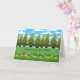 Un mignon lapin sent une fleur de marguerite et prend tout sur la couverture de cette carte de voeux d'anniversaire pour une Mam, Mère. Illustration numérique d'un paysage avec une rangée d'arbres, des nuages bouffants, des lapins et des fleurs. Art, image, et vers © Shoaff Ballanger Studios, 2023.