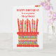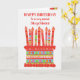 Vous pouvez ajouter l'âge à cette carte d'anniversaire aux couleurs vives pour votre belle-soeur, avec un gâteau d'anniversaire aux fraises. Le gâteau a beaucoup de bougies avec différents motifs et il y a une bande à motifs autour du gâteau avec des fruits d'été colorés - fraises, framboises, citron vert et tranches d'orange. Au-dessus du gâteau, l'accueil, en lettres rouges, est "HEUREUX ANNIVERSAIRE à une Sister pas très spéciale" et sur le gâteau il y a un espace pour ajouter l'âge, suivi par "ans today !" en lettres blanches. N'hésitez pas à customiser le message intérieur si vous le souhaitez ; vous pouvez changer la police et la couleur ainsi que le message.