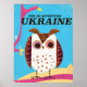 Affiche de voyage de chouettes d'Ukraine, affiche de voyage rétro ukrainienne rétro avec un chouette.