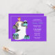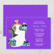 Invitez les invités pour une douche nuptiale dans le style avec cette invitation nuptiale moderne et d'amusement de douche. Cette invitation de pourpre et de turquoise comporte une jeune mariée d'une chevelure rouge s'asseyant sur une chaise entourée par des cadeaux.