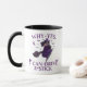 Mug Halloween Mug présente une sorcière élégante dans une robe violette et casquette, "Pourquoi Oui, je peux conduire un bâton" Mug Broomstick Party Funny sorcières sorcière sorcière, wicca, witchyvibes