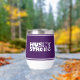 Ce tumeur thermique isolée est montré dans un imprimé Husky Strong. Couleur violet Blanc Choisissez un autre style ou achetez tel quel. Image sous licence
