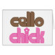 Le logo de musique de poussin de violoncelle dans rose et brun chocolat fait un cadeau mémorable pour n'importe quel musicien de violoncelle.