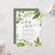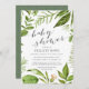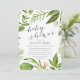 Notre invitation au baby shower Wild Meadow présente vos détails de baby shower en gris, encadrés par une verdure d'aquarelle peinte dans des tons luxuriants de vert printemps, d'olive et de fougère. Un choix moderne mais organique avec des accents de calligraphie chic, pour des baby showers neutres de genre avec des feuilles verts frais et des tiges dans Greenery, couleur de l'année 2017.