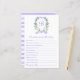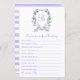 Cette adorable feuille de jeu de baby shower de fille qui dit "Prédictions pour ______" serait parfait pour votre baby shower ou saupoudrer. Il a une crête d'aquarelle violette monogrammée entourée de verdure et de roses blanches, votre paquet de la première initiale et nom de la joie, et une aquarelle violette coordonnée réparti. C'est unique et précieux et une façon merveilleuse de laisser des amis et de la famille partager leurs prédictions sur votre future petite fille.