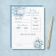 Feuilles de papier "prédictions et conseils" pour une baby shower baleine garçon bleu et blanc à budget. Pour personnaliser ou modifier le texte, les couleurs et les polices, veuillez cliquer sur le bouton pour modifier le design. Comprend la date de naissance, l'heure, le poids, la taille, la couleur des yeux, la couleur des cheveux, la ressemblance et un espace pour ajouter un message de conseil pour les nouveaux parents.