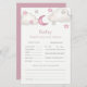 Prédictions et conseils pour une baby shower Dusty Pink Girl. Prédictions et conseils de baby shower de style moderne pour une fille. Il comporte une illustration aquarelle de nuages charmants, de lune et d'étoiles. Parfait pour une baby shower.