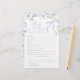 Prédictions pour bébé Floral Blue Bow carte baby shower. Des éléments correspondants sont disponibles.