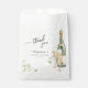 Préférez les Sacs pour une douche nuptiale dans un style délicat, élégant, minimaliste avec une belle aquarelle illustrant des brindilles délicates aux feuilles verts, une bouteille de vin et des verres.