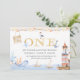 Très jolie invitation à l'anniversaire avec un thème nautique. Cet invitation est parfait pour une fête d'anniversaire avec un phare, des bateaux, une ancre, une étoile de mer et une baleine bleue. Ajoutez les détails de votre fête pour une invitation de 1er anniversaire.
