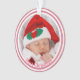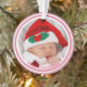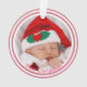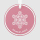 Ce joli ornement de Noël acrylique de forme ronde peut être personnalisé avec votre photo sur le devant et votre propre texte sur le devant et le dos. Le cadre photo est un rose pâle accentué d'un flocon de neige blanc sur le dos. Grand cadeau pour les parents du premier Noël d'un nouveau bébé.