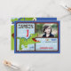 Carte préhistorique d'invitation d'anniversaire de rex vert mignon et effrayant de tyrannosaurus première.
