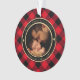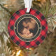 Cet adorable ornement de Noël à thème rustique pour les nouveaux papas présente votre photo avec bébé et papa à l'avant bordé d'un cadre circulaire doré et noir sur un arrière - plan plaid de buffle rouge et noir. Les mots de la typographie d'or lisent "faux MY FIRST CHRISTMAS AS DADDY ♥" avec le nom de votre bébé et l'année ci-dessous pour personnaliser. Fait un cadeau unique pour les pères de la première fois. Conçu par l'artiste ©Susan Coffey.