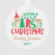 Cette conception de photo festive et mignonne présente une typographie amusante rouge et verte avec un bonnet et des graphiques d'arbre de Noël pour commémorer le 1er Noël de bébé ! La collection de produits coordonnés est disponible dans notre boutique, zazzle.com/store/doodlelulu. Contactez-nous si vous avez besoin de cette conception appliquée à un produit spécifique pour créer votre propre article assorti unique ! Merci beaucoup d'avoir consulté un DoodleLulu par la conception de 2 june bugs !